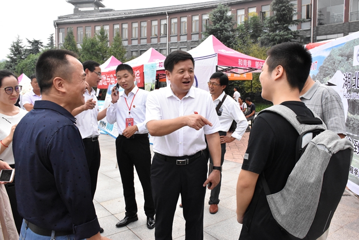 校长丁世学上午来到机械与汽车工程学院新生接待处前,与一位新生家长亲切地交谈。丁世学对家长说:“感谢您对学校的信任,感谢你们选择了湖北文理学院”,家长告诉丁世学:“我也是一名‘湖北文理学院人’,我是原襄大的毕业生,我的岳父是学校的退休教师,加上我的儿子,我们一家三代都是‘湖北文理学院人’”。说这话时,家长脸上洋溢着自豪的笑容。丁世学风趣地告诉学生家长,“您既是孩子的爸爸,也是孩子的学长”。丁世学为他这份“母校情结”竖起大拇指,并鼓励孩子在学校努力学习,成长成才。